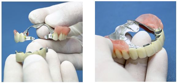 A meglévő fogakra hidat készítünk, amelyhez egy fémlemezre készített részleges fogsort gyártunk. Ezt a fogsort egy vagy két oldalon (függően az illeszkedési helytől) speciális csúsztató köti össze a híddal.